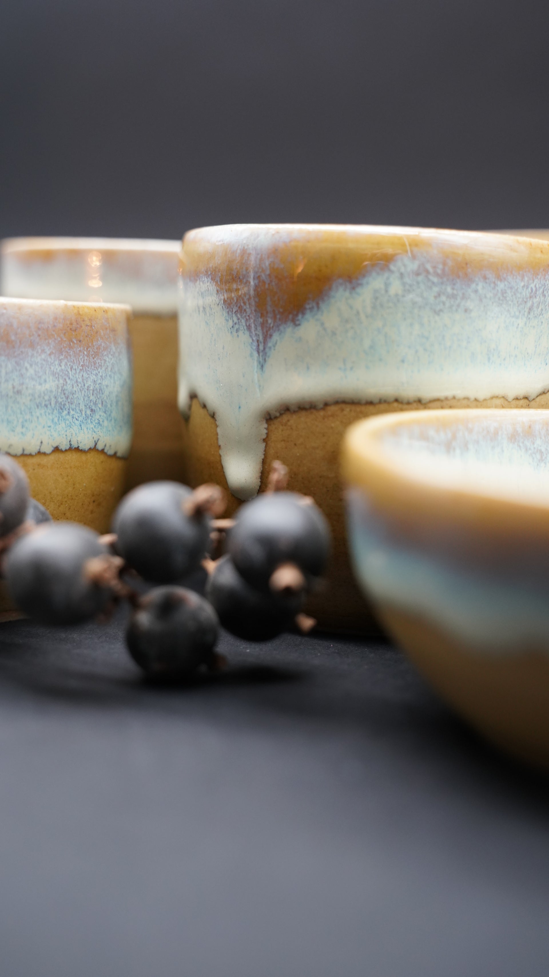 Die Glasuren sind getestet und unterliegen den Bestimmungen für Lebensmittelechtheit. Die Becher werden bei 1240 Grad gebrannt.