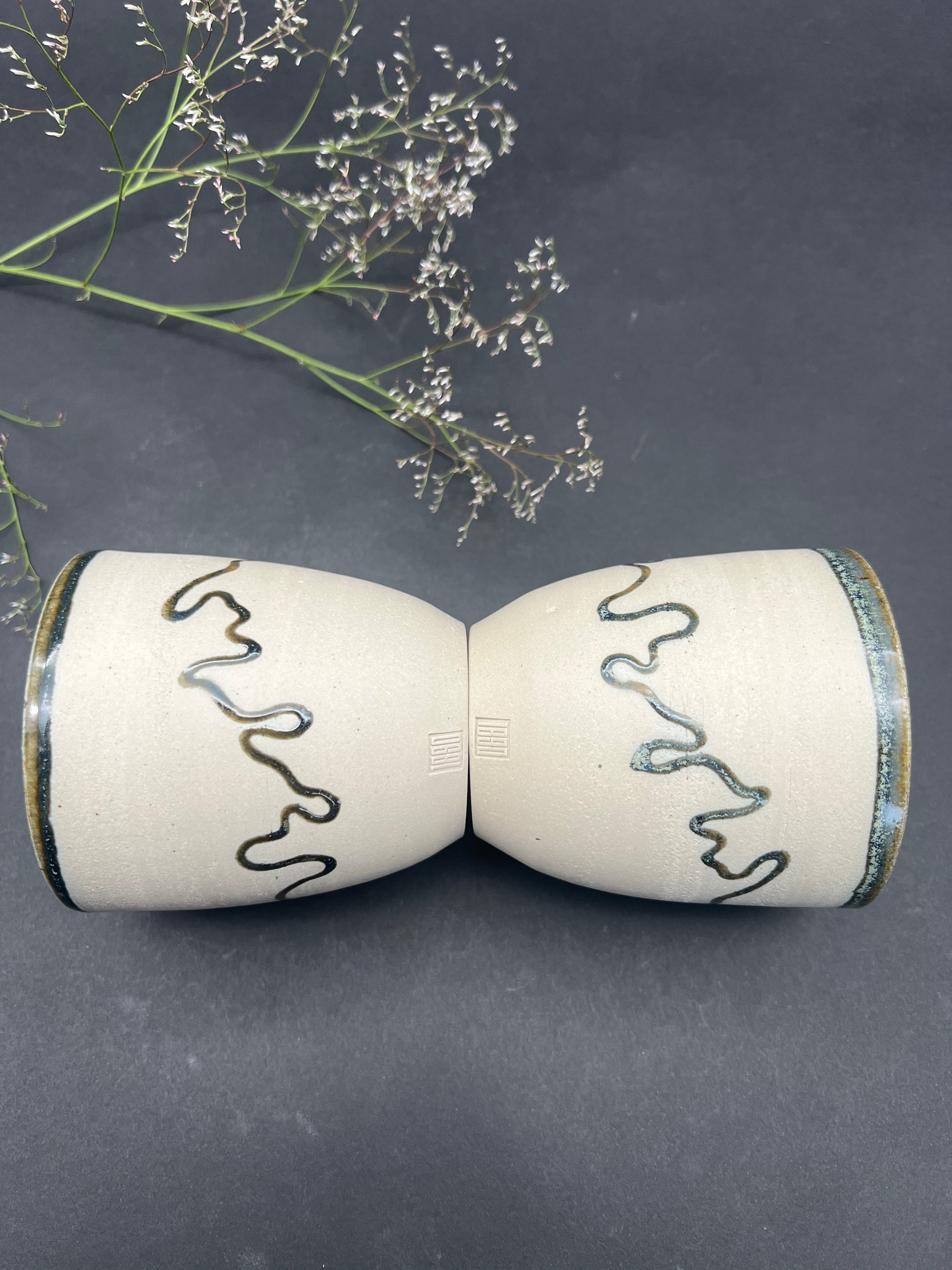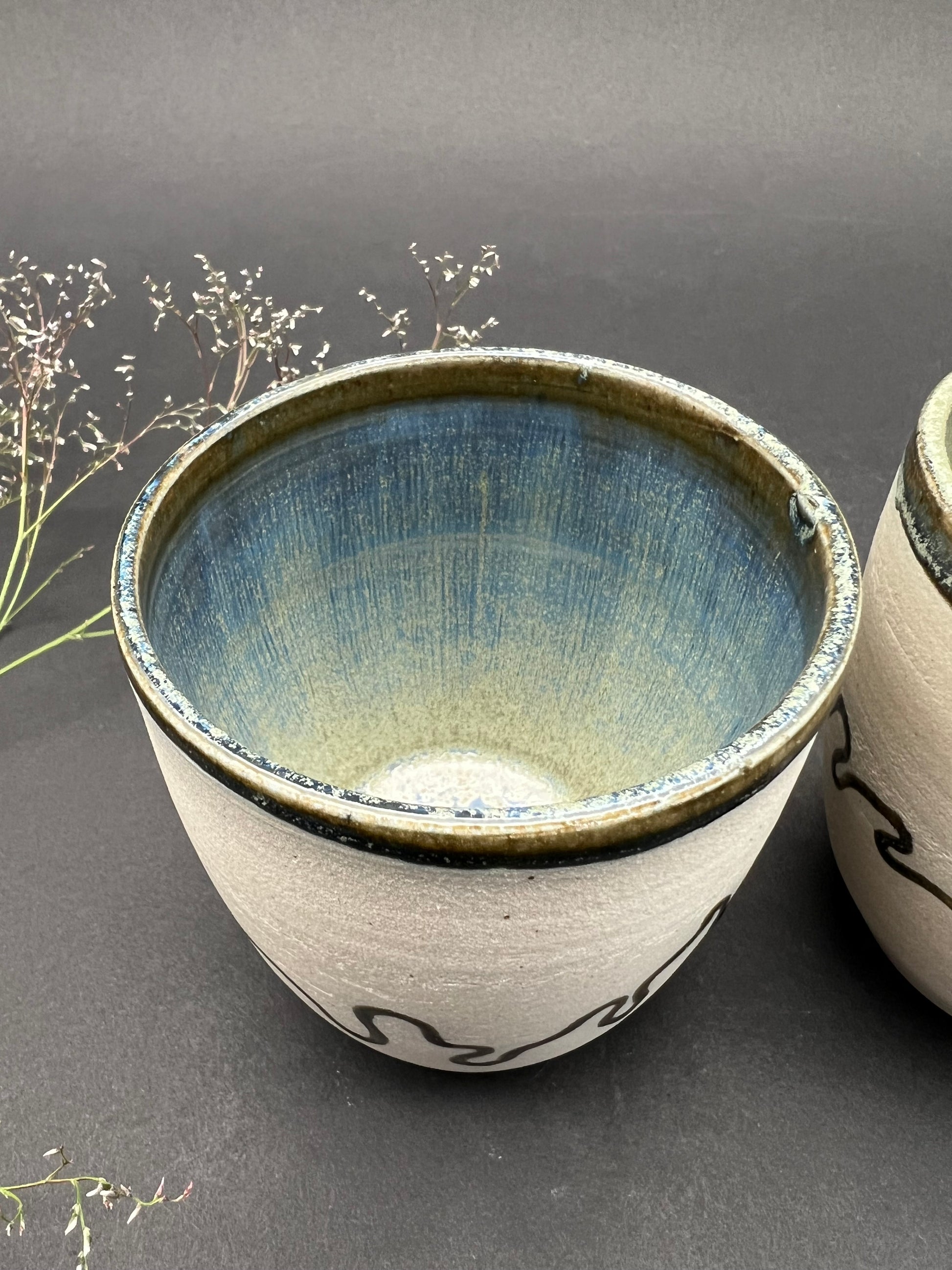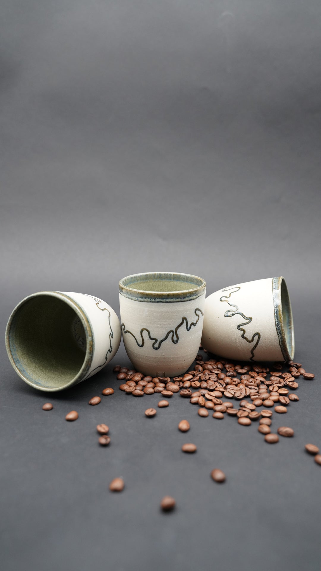 Die Glasuren sind getestet und unterliegen den Bestimmungen für Lebensmittelechtheit. Die Becher werden bei 1240 Grad gebrannt.