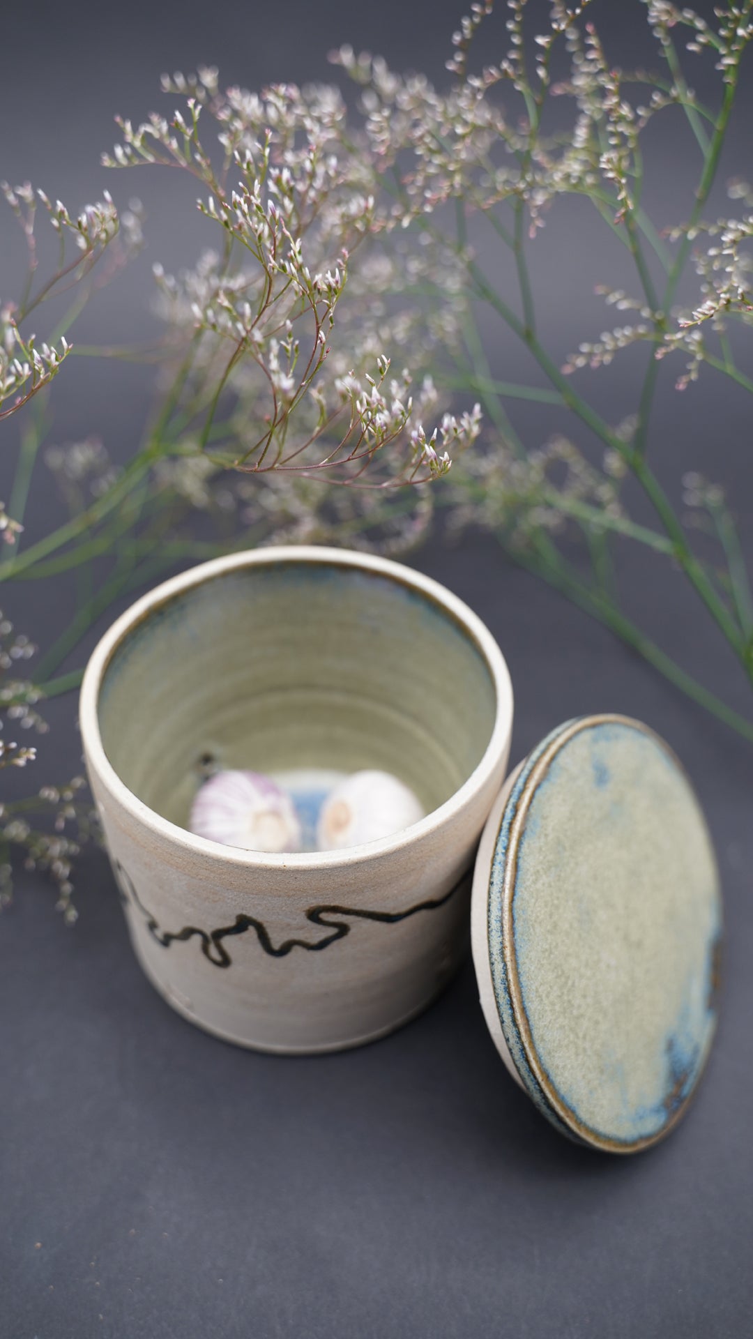 Die Glasuren sind getestet und unterliegen den Bestimmungen für Lebensmittelechtheit. Die Dosen wurde bei 1240 Grad gebrannt.